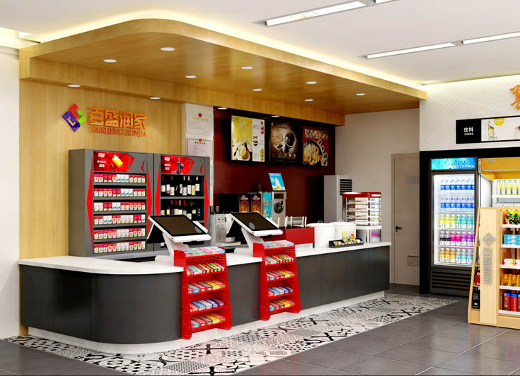 5、 烟酒店货架走廊。货架走廊存在视觉盲区,易发生货架商品缺失,安装监控摄像头可以进行录像取证。