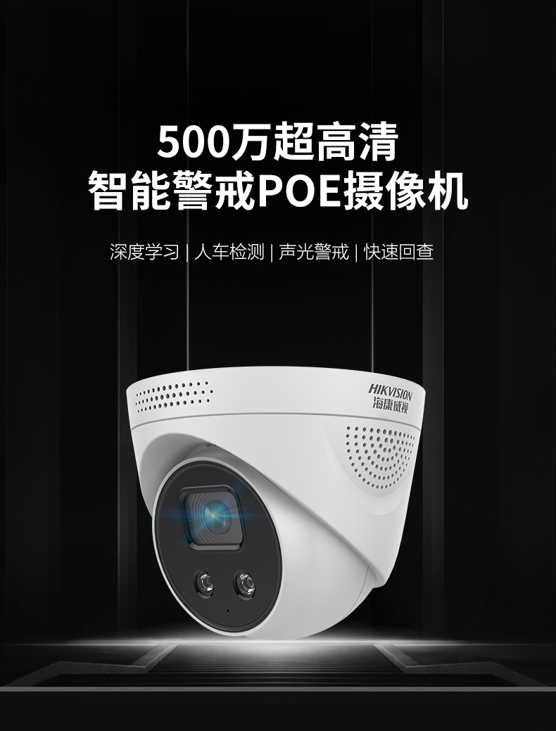 东风镇海康威视500万AI智能摄像头POE家用高清夜视可手机远程网络监控器